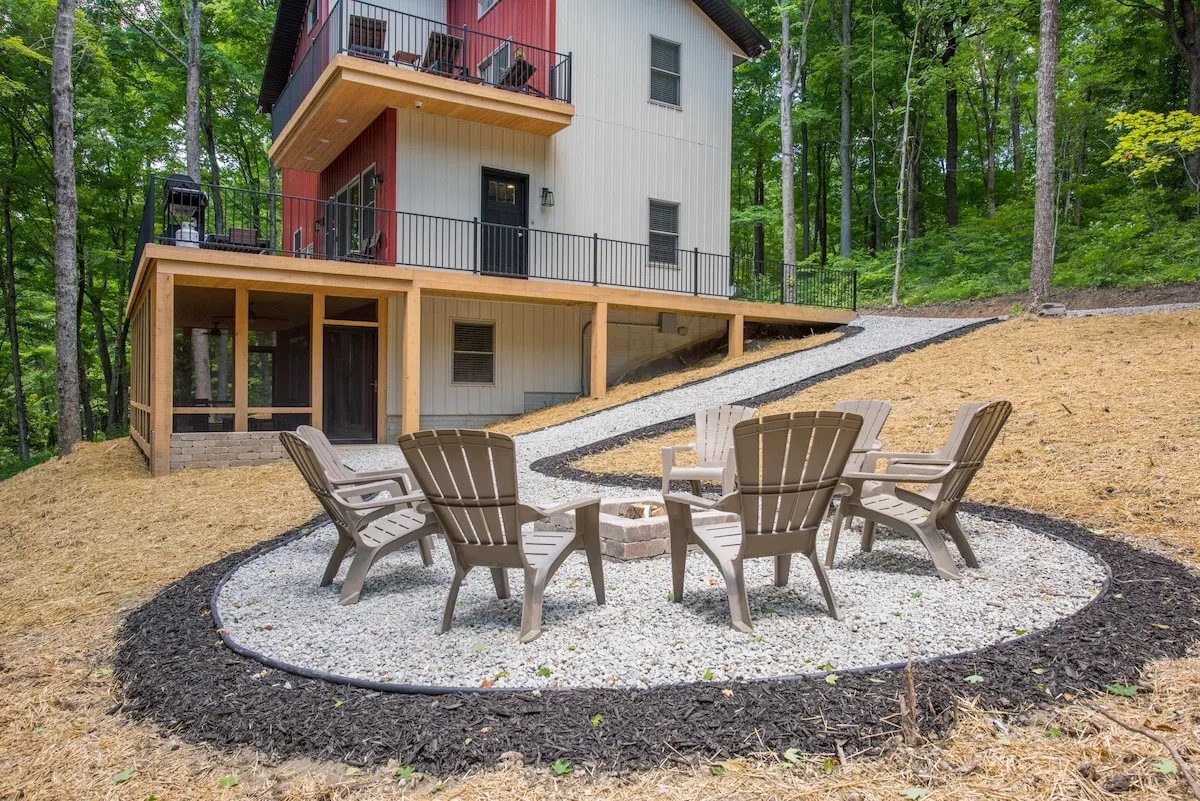 Welcome to Luxe Haus, the ultimate escape to luxury in the heart of Hocking Hills, Ohio! This modern mid-century cabin is nestled on 13 private wooded acres, offering the perfect balance of serenity and comfort. With its spacious four bedrooms and three bathrooms, Luxe Haus can comfortably accommodate up to 10 guests, making it perfect for families or groups of friends seeking a relaxing getaway.